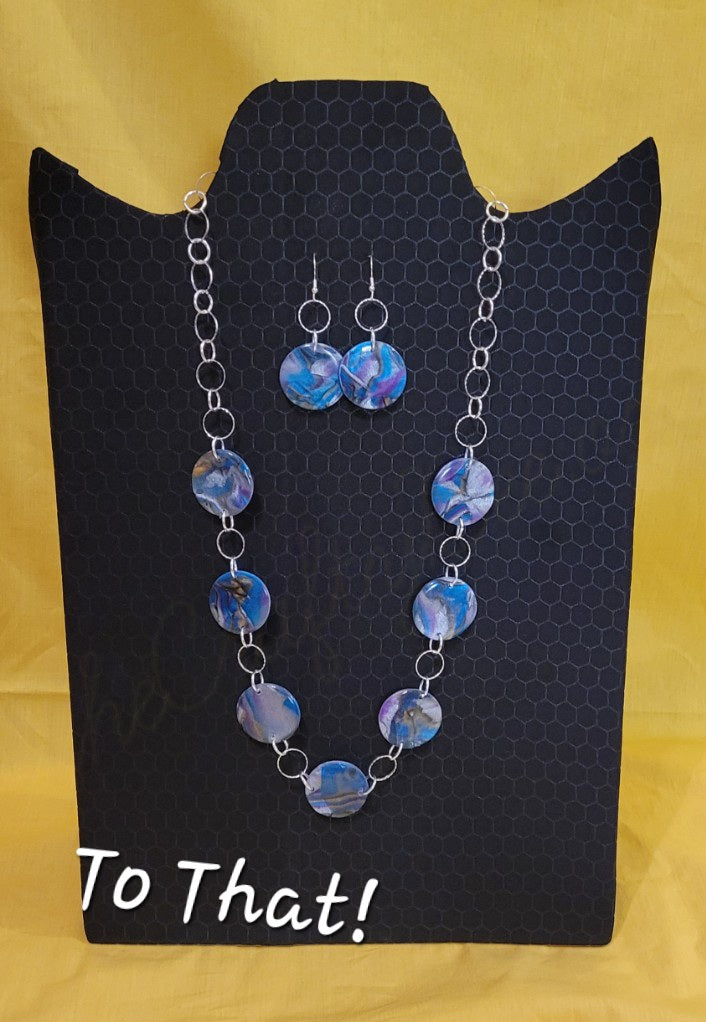 Necklace measures 27" with a 2" extender chain and lobster claw clasp. Made with polymer clay, the findings are made from silver plated copper and iron. Nickel Free.