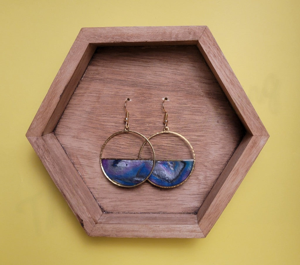 Blue/Purple Gold Half Circles. This beautiful, one of a kind, pair measures 2.25" and weighs less than a penny!