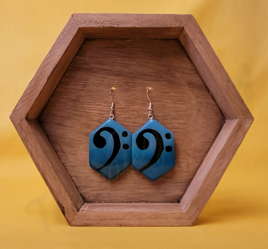 Celebrate your love for music with these fun and funky bass clef earrings. Shown here in a striking blue ombré, each pair is handmade, lightweight, and can be customized in any color you like. Finished with silver earhooks for a smooth, comfortable fit — perfect for musicians and music lovers alike!